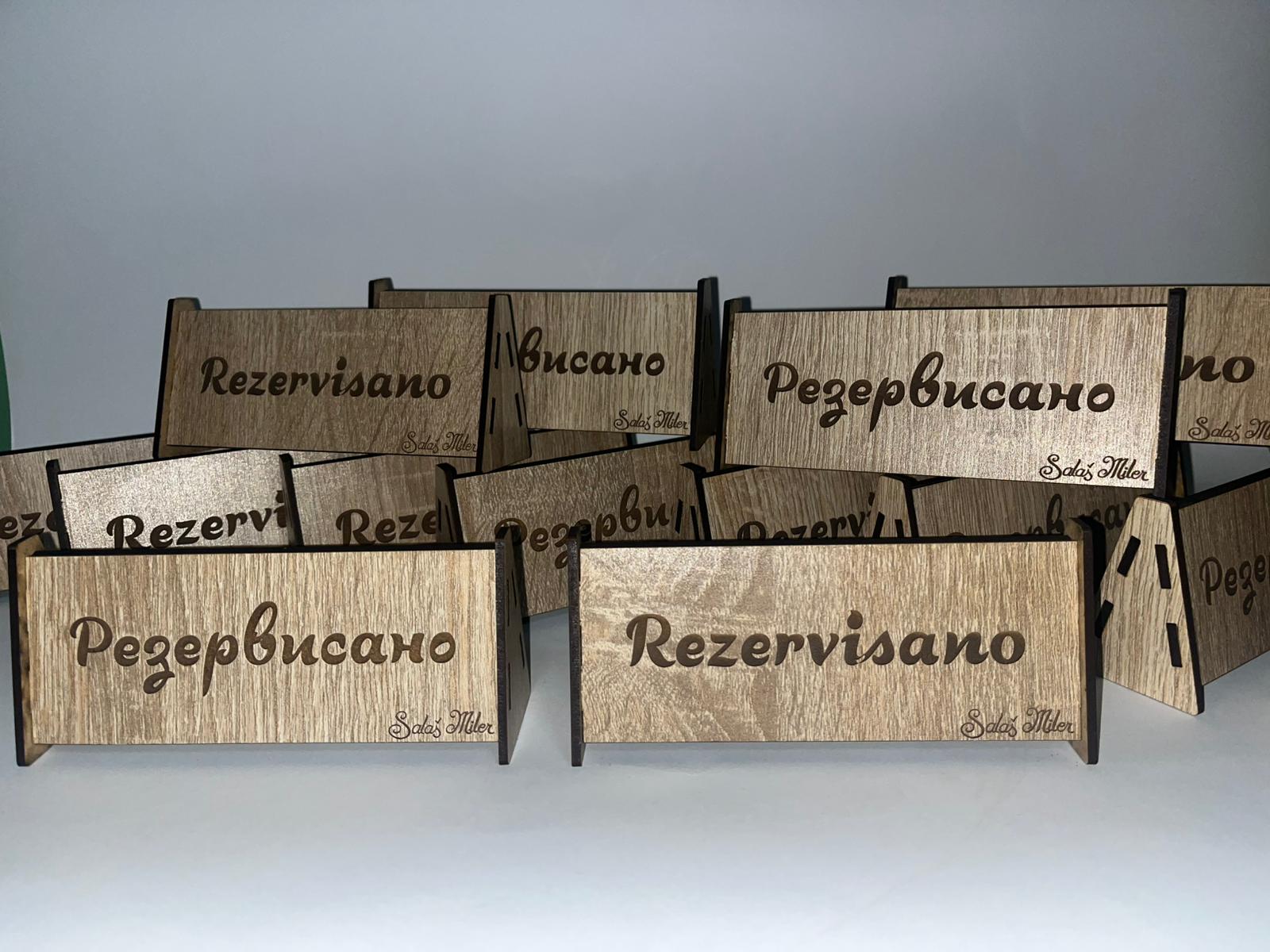 Profesionalna drvena oznaka za rezervisane stolove, namenjena restoranima, kafićima i ugostiteljskim objektima koji žele uredan i prepoznatljiv izgled svog prostora.